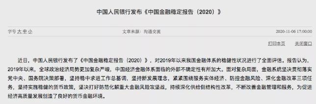 刚刚,央行网站公布了《中国金融稳定报告(2020)》。报告对2019年以来我国金融体系的稳健性状况进行了全面评估。
